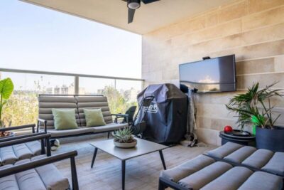 המרפסת 12 מ״ר עם נוף פתוח, לכיוון צפון,