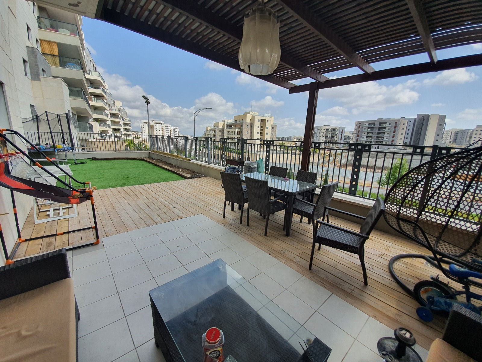 דירת 5 חדרים, מרפסת 35 מ"ר, מחסן וחניה .